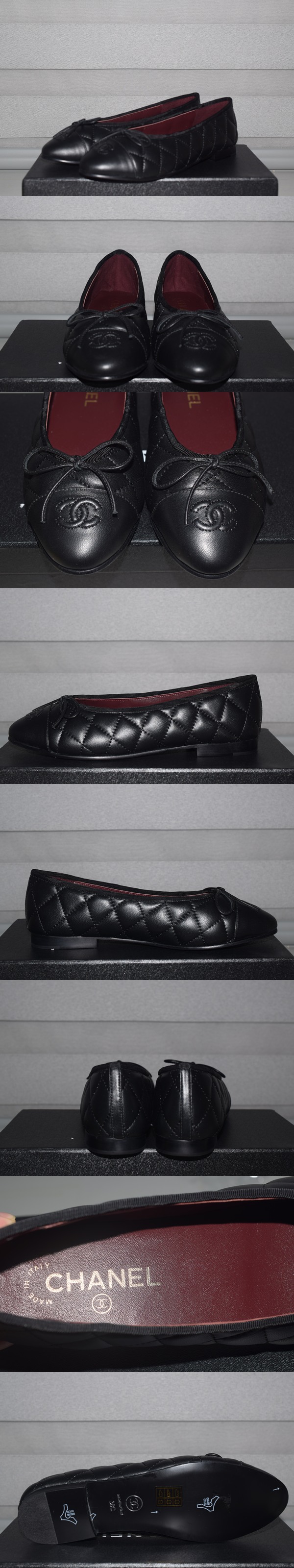 샤넬 여성 클랙식 CC 로고 리본 엠보싱 발렛 플랫 슈즈